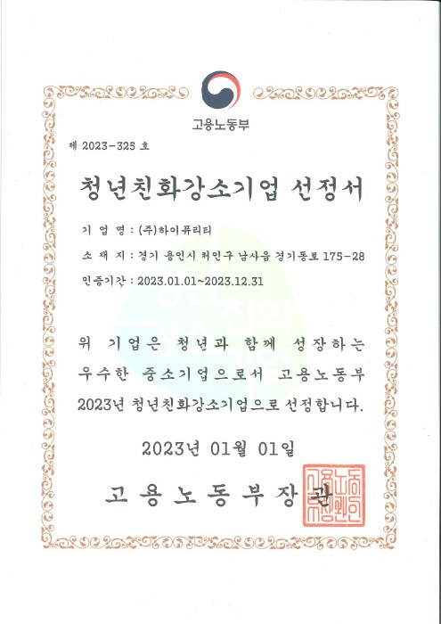 Certificate of Selection as a Youth-Friendly Small Giant Com…