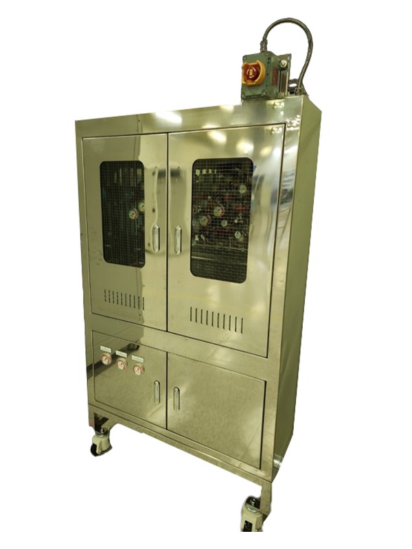 High Pressure Safety-Certified Gas Cylinder Cabinet is a device designed for the secure storage and usage of high-pressure gas cylinders.Manufactured in accordance with KGS AA913, this is equipped with safety valves, warning lights, a PLC display, differential pressure gauge, and other essential features.
